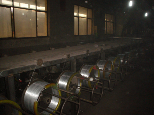 | Features: A. Excellent straightness B. Uniform and beautiful surface condition C. Excellent coil-forming ability D. High elasticity and high fatigue resistance E. Strong corrosion resistance against exposure to the toughest atmosphere F. Strong acid resistance & alkali resistance | Process: Steel rod coil -- Wire Drawing -- Annealing -- Rust Removing -- Acid Washing -- Zinc Plating -- Wire Coiling. |